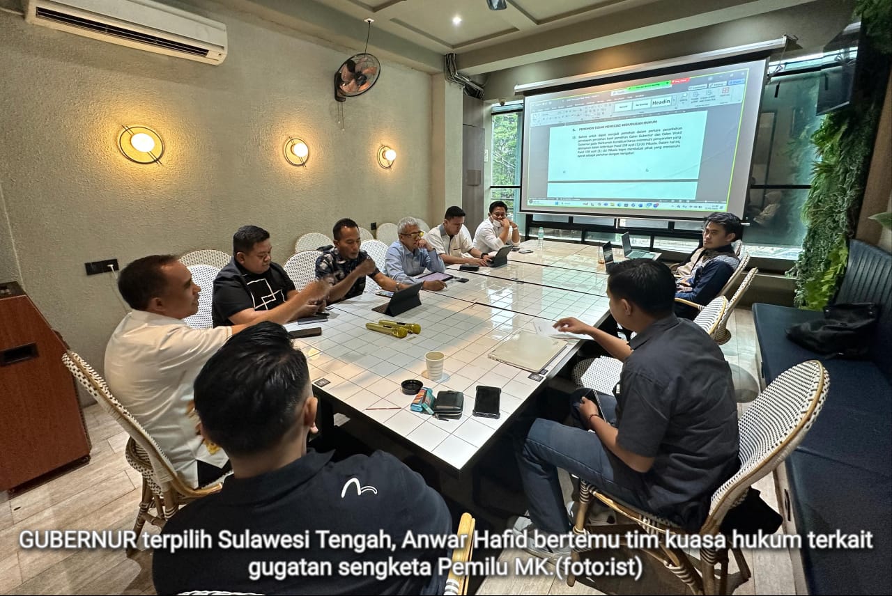JAKARTA,Brita.id – Gubernur Sulawesi Tengah terpilih, Anwar Hafid, menggelar rapat dengan Tim Kuasa Hukum BERANI dan Ihza & Ihza Lawfirm, Selasa (21/1), di Cascade Kofy, Menteng, Jakarta Pusat. Pertemuan ini membahas strategi hukum menghadapi gugatan pasangan calon nomor urut 1, Ahmad Ali-Abdul Karim Al-Jufri.
