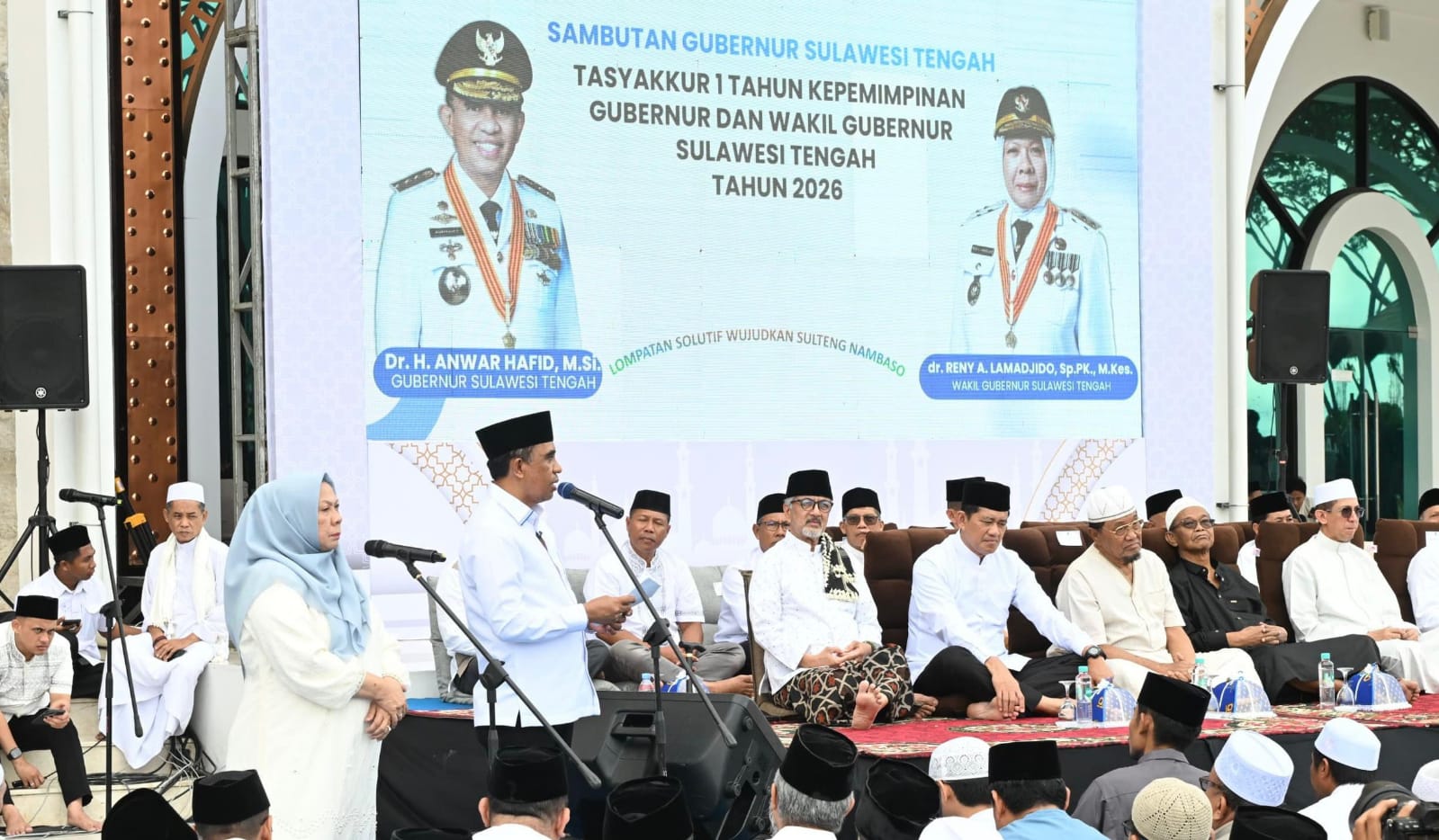 PALU,Brita.id– Gubernur Sulawesi Tengah Anwar Hafid bersama Wakil Gubernur Reny A. Lamadjido menggelar Tasyakuran 1 Tahun Sulteng BERANI yang dirangkaikan dengan dzikir, doa bersama dan buka puasa bersama ribuan masyarakat di pelataran Masjid Raya Baitul Khairaat, Minggu (22/2/2026).