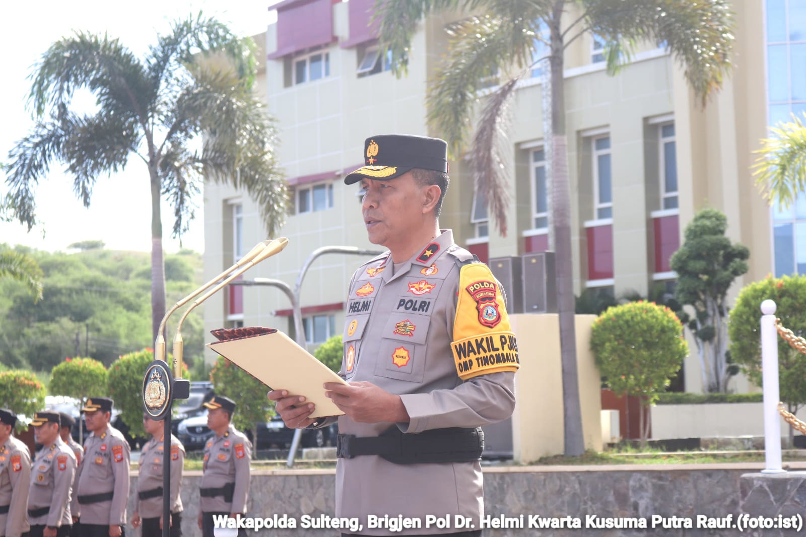 Upacara bulanan ini dipimpin langsung Wakapolda Sulteng, Brigjen Pol Dr. Helmi Kwarta Kusuma Putra Rauf, yang mewakili Kapolda.