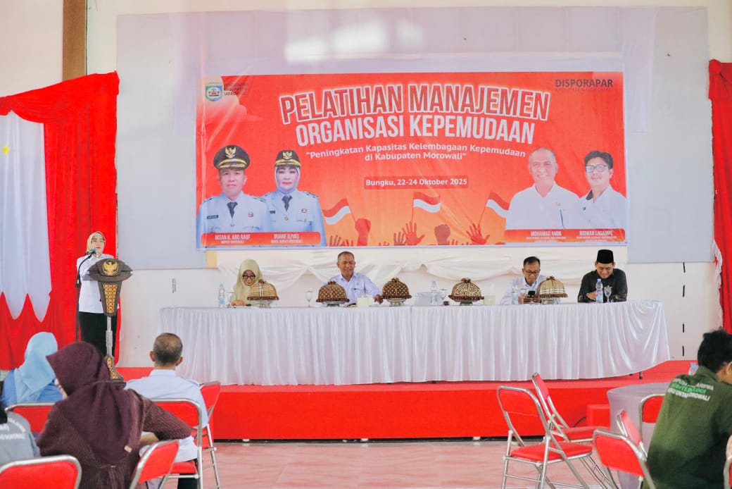 MOROWALI, Brita.id – Pemerintah Kabupaten (Pemkab) Morowali melalui Dinas Pemuda, Olahraga, dan Pariwisata Daerah (Disporapar) menggelar Pelatihan Manajemen Organisasi Kepemudaan di Hotel Surya, Desa Bente, Kecamatan Bungku Tengah, Rabu (22/10/2025).