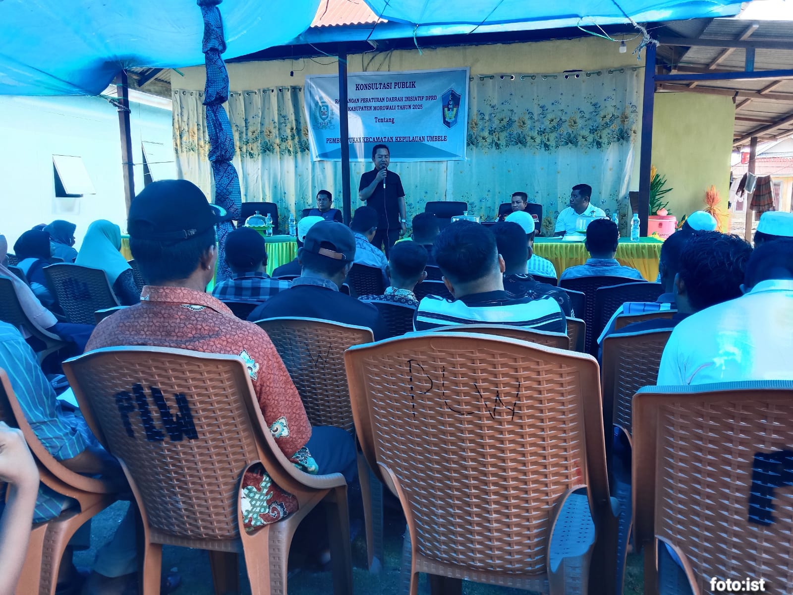 Konsultasi publik Ranperda inisiatif DPRD Kabupaten Morowali 2025 tentang pembentukan Kecamatan Pulau Umbele itu juga dihadiri Anggota DPRD Morowali, Muslim Dg Masiga dan Kabag Persidangan dan Perundang undangan DPRD Kabupaten Morowali.(PAL)