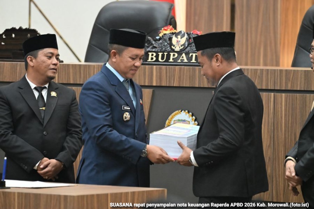 MOROWALI, Brita.id– Dewan Perwakilan Rakyat Daerah (DPRD) Kabupaten Morowali menggelar Rapat Paripurna dengan agenda penyampaian pidato pengantar Nota Keuangan Rancangan Peraturan Daerah (Raperda) tentang APBD Tahun Anggaran 2026 oleh Bupati Morowali, Iksan Baharudin Abdul Rauf, Selasa (30/9/2025), di ruang sidang utama DPRD.