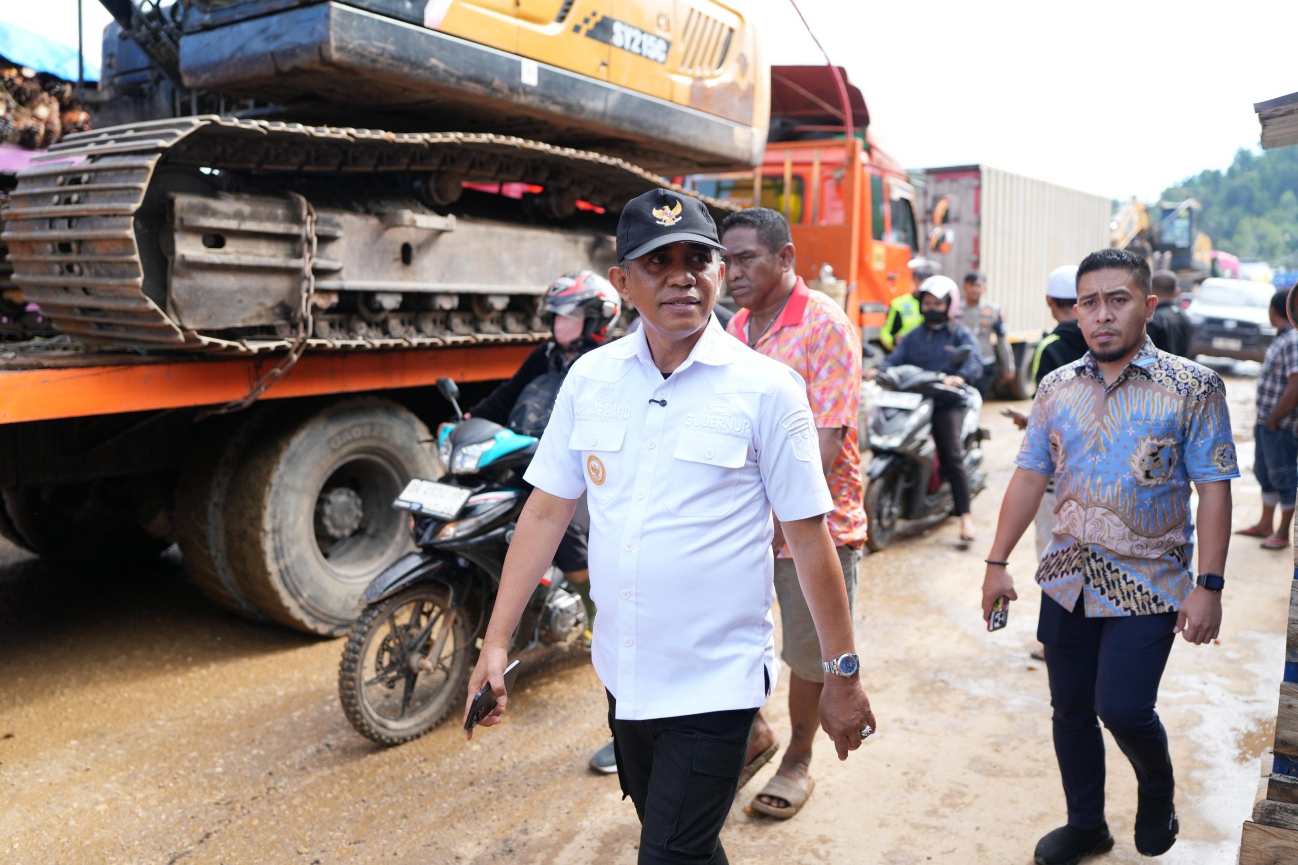 MORUT,Brita.id – Gubernur Sulawesi Tengah, Anwar Hafid, turun langsung meninjau kondisi jalan negara di Poros Tompira–Bungku, Kabupaten Morowali Utara, yang mengalami kerusakan berat dan kemacetan total akibat rusaknya badan jalan pada Kamis (23/10/2025).