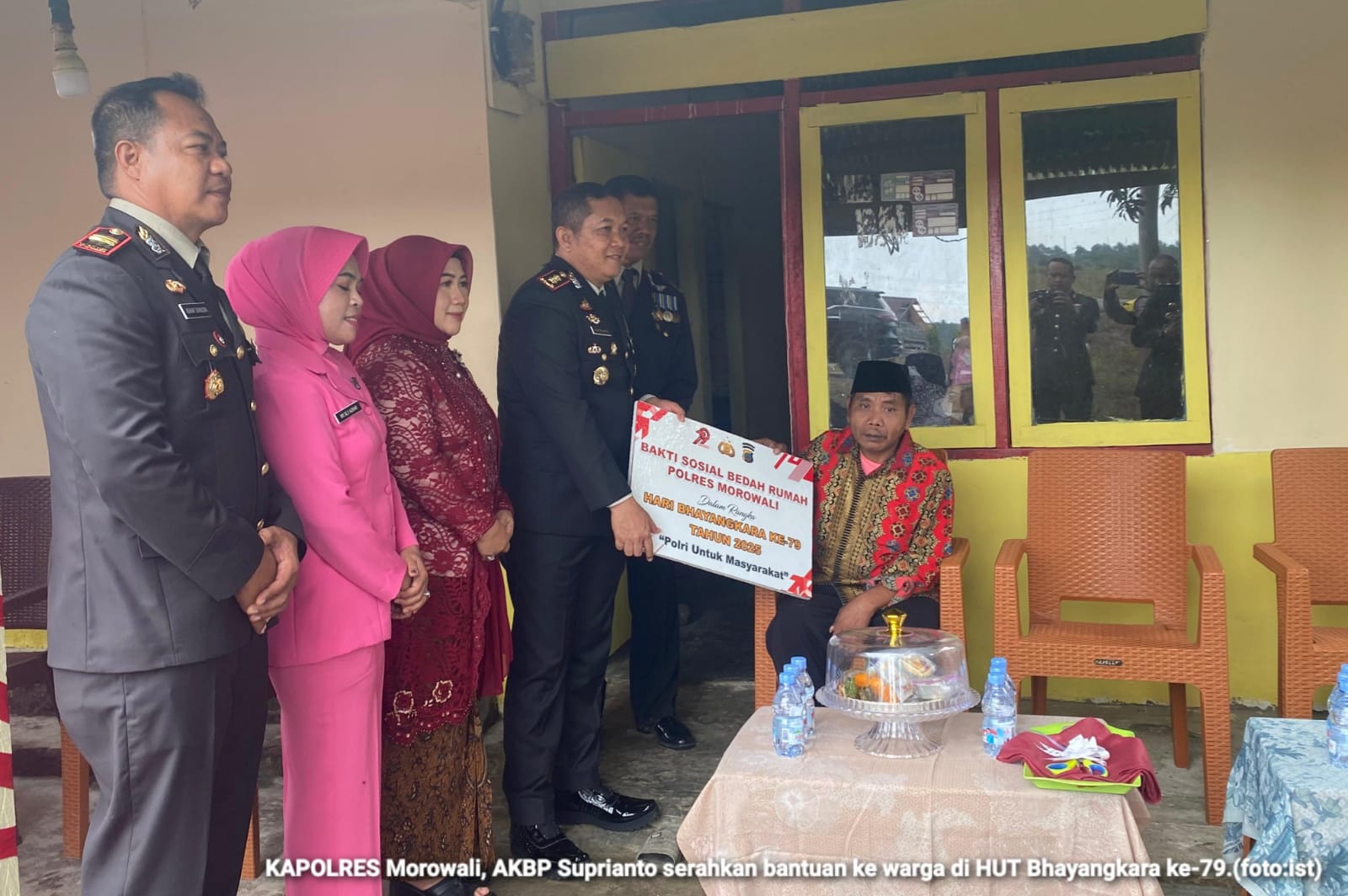 MOROWALI,Brita.id – Dalam rangka memperingati Hari Bhayangkara ke-79, Kepolisian Resor (Polres) Morowali, Polda Sulawesi Tengah, menyerahkan empat bantuan bedah rumah dan satu fasilitas air bersih kepada masyarakat di wilayah hukumnya.