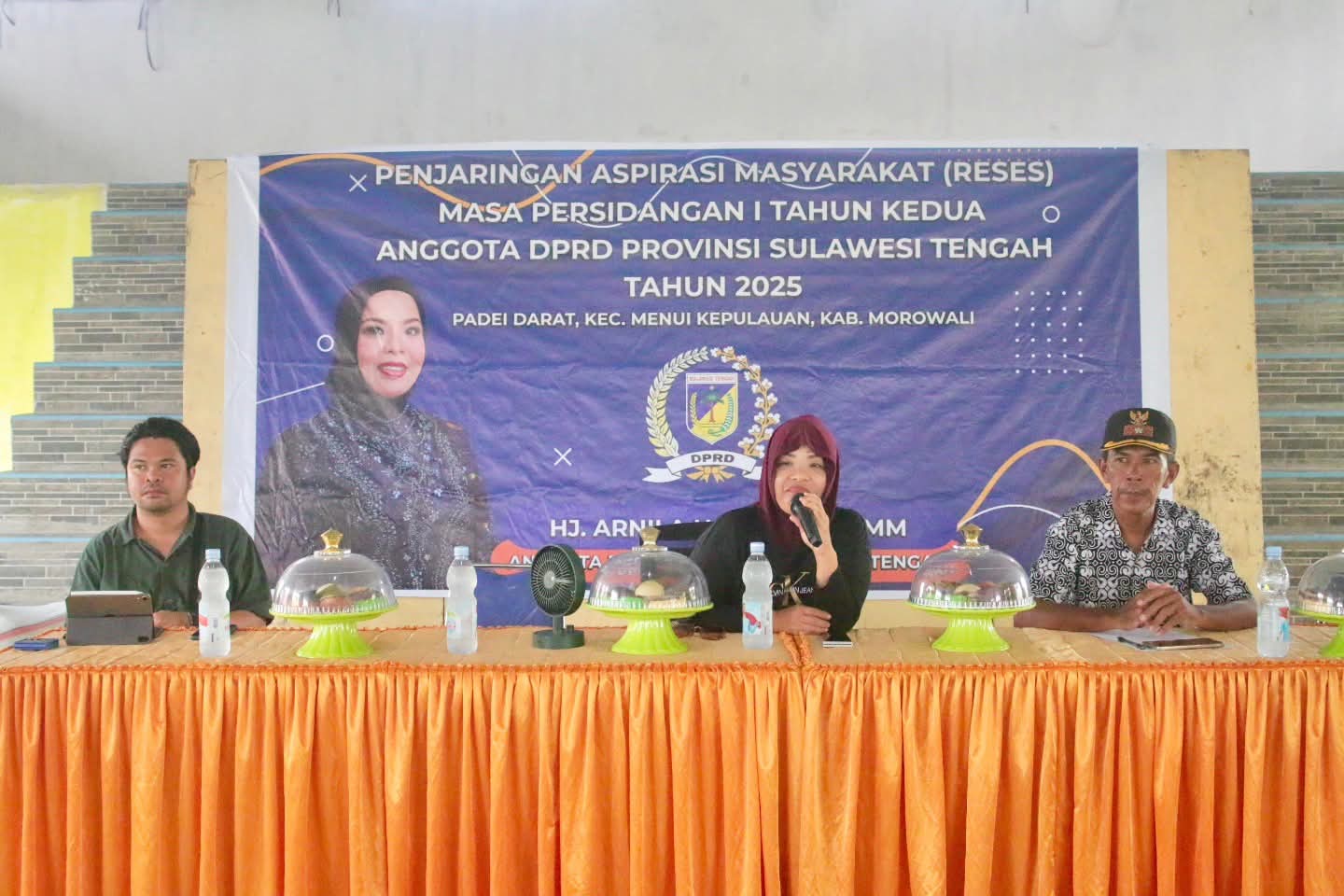 MOROWALI, Brita.id – Anggota DPRD Provinsi Sulawesi Tengah, Hj. Arnila M. Ali, melaksanakan kegiatan reses atau penjaringan aspirasi masyarakat di Kecamatan Menui, Kabupaten Morowali, Selasa (25/11/2025). Kegiatan ini merupakan bagian dari Masa Persidangan I Tahun Sidang II Tahun 2025.
