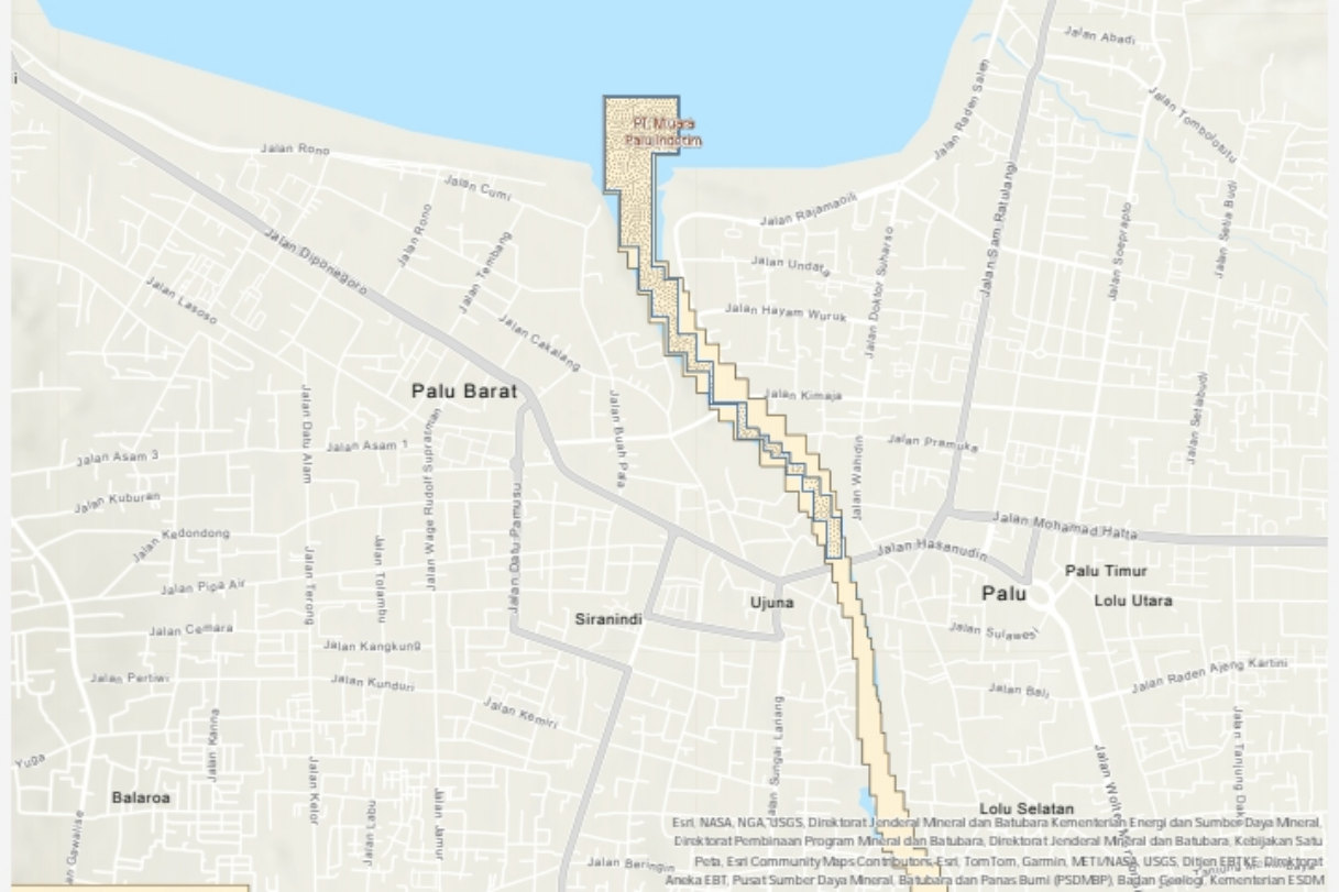 Izin tersebut diberikan kepada PT Muara Palu Indotim dengan status pencadangan. Berdasarkan dokumen yang diterima ANTARA, Kamis (17/4), area WIUP seluas 18,48 hektare itu membentang dari Jembatan I hingga Jembatan II dan III Palu, serta berakhir di Teluk Palu, tepat di bekas lokasi Jembatan IV atau Jembatan Ponulele.