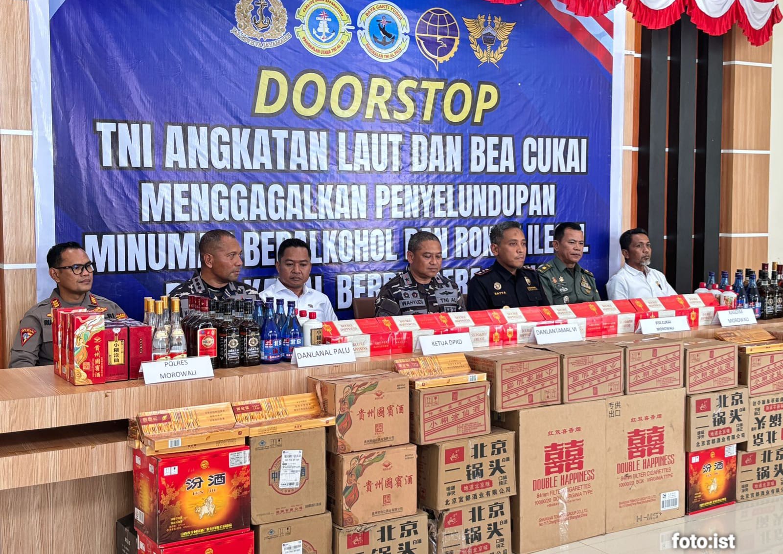 Komandan Lantamal VI Makassar, Brigjen TNI (Marinir) Wahyudi, menjelaskan bahwa ribuan botol miras dan ratusan slop rokok ilegal asal Tiongkok disita oleh Patroli Keamanan Laut Lanal Palu pada Sabtu (17/5/2025).