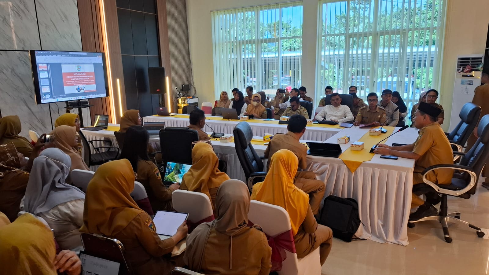 Sosialisasi tersebut turut menghadirkan narasumber dari Dinas Kominfo, Statistik, dan Persandian, Fahri Rahman, yang memaparkan aspek teknis sistem pelaporan, alur penanganan pengaduan, serta perlindungan bagi pelapor.