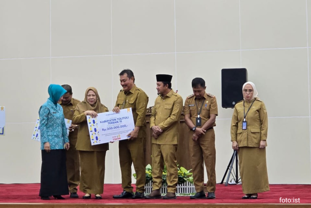 ” Terimakasih kepada semua pihak yang terkait dalam rangka percepatan penanganan stunting, sehinggah hari ini Pemkab Tolitoli kembali meraih penghargaan terbaik ke tiga atas pelaksanaan kinerja Konvergensi penurunan stunting terintegrasi,” kata Bupati Tolitoli yang didampingi Ketua DPRD Tolitoli, Sriyanti Dg Parebba, saat menerima insentif penghargaan yang diserahkan oleh Wakil Gubernur Sulteng.