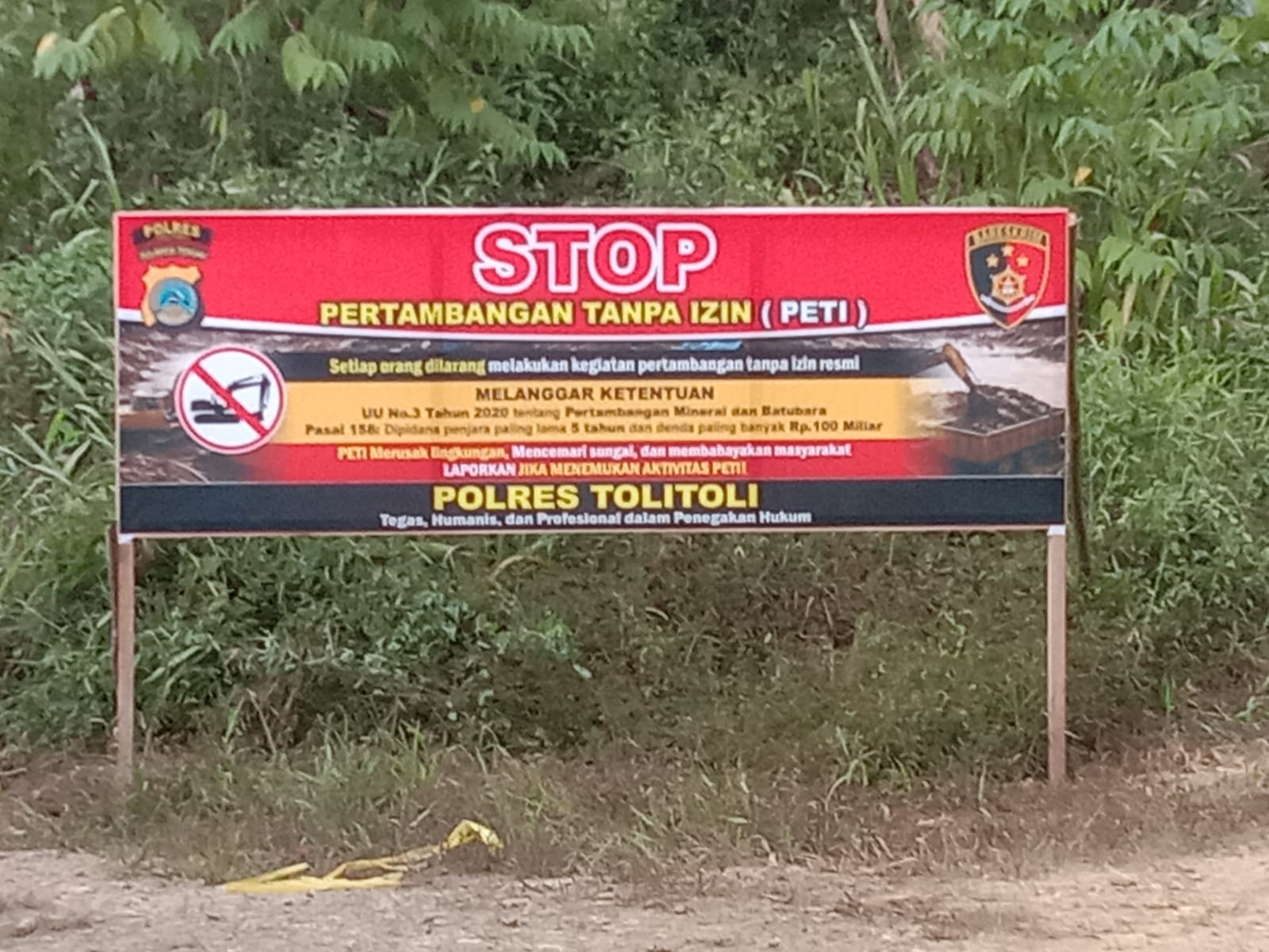 TOLITOLI, Brita.id– Aktivitas Pertambangan Tanpa Izin (PETI) di Kabupaten Tolitoli terus berlangsung. Meski aparat kepolisian telah memasang plang bertuliskan larangan “Stop Pertambangan Tanpa Izin”, praktik ilegal tersebut diduga masih berlangsung di sejumlah titik.