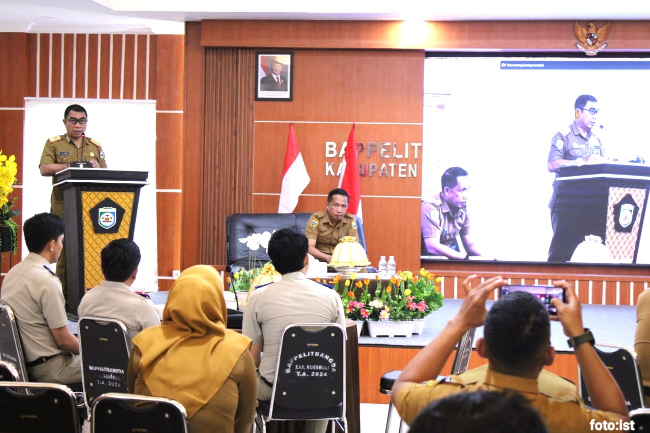 Rakorda berlangsung di Aula Kantor Bappelitbangda Kabupaten Morowali, Desa Bente, Kecamatan Bungku Tengah, Senin (23/6/2025).