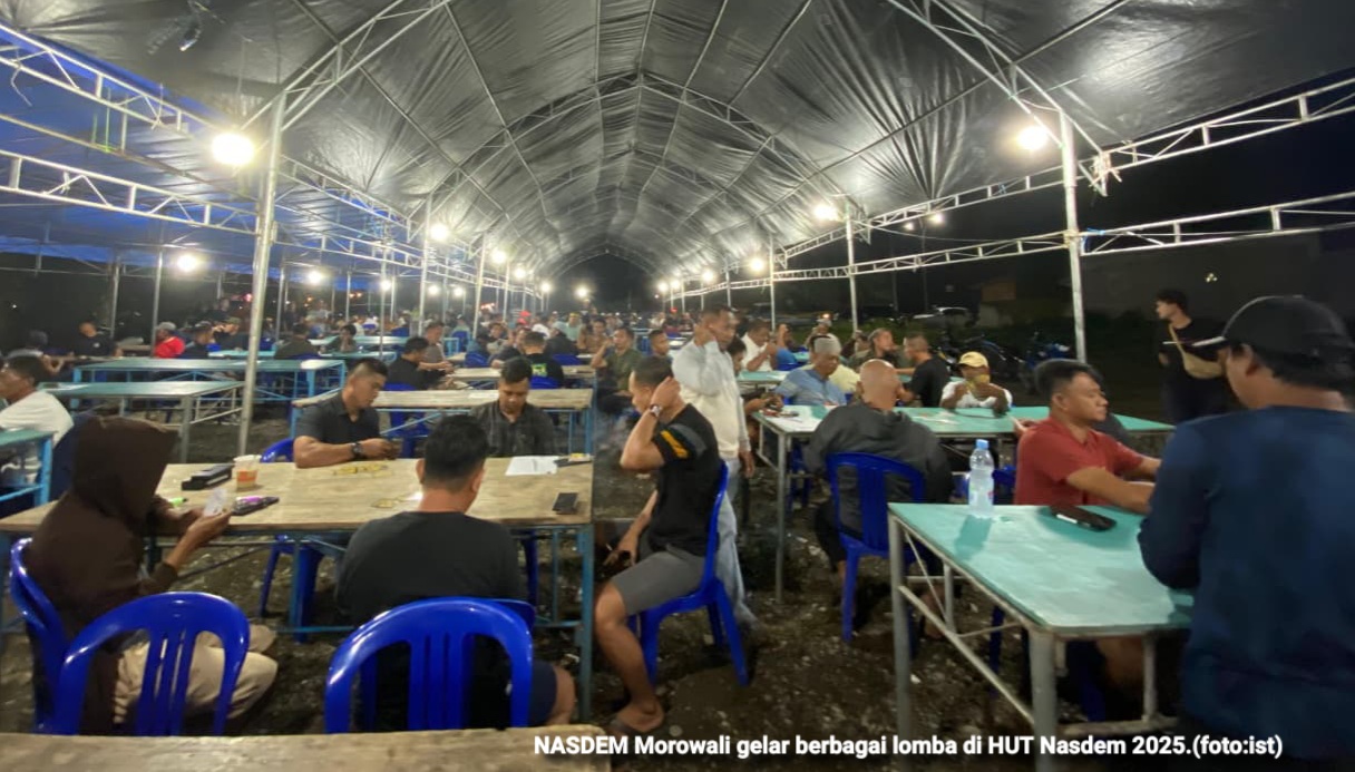 MOROWALI,Brita.id– Dalam rangka memeriahkan Hari Ulang Tahun (HUT) Partai NasDem ke-14, Tahun 2025, Dewan Pimpinan Daerah (DPD) Partai NasDem Morowali menggelar pertandingan kartu remi atau warga setempat menyebutnya bangka-bangka.