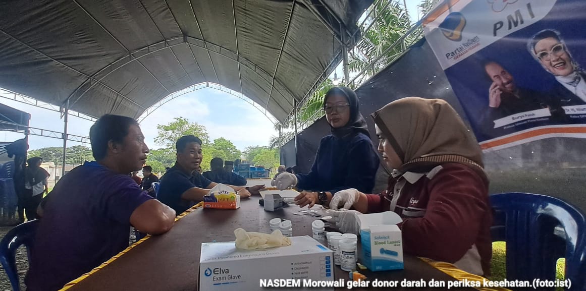 MOROWALI, Brita.id – Dalam rangka menyambut Hari Ulang Tahun (HUT) ke-14 Partai NasDem yang jatuh pada 11 November 2025, Dewan Pimpinan Daerah (DPD) Partai NasDem Kabupaten Morowali menggelar kegiatan sosial berupa donor darah dan pemeriksaan kesehatan gratis bagi masyarakat. Kegiatan berlangsung di Taman Kota Fonuasingko, Selasa (28/10)