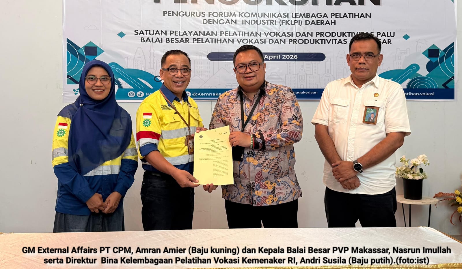 Sebelumnya, PT CPM dan Balai Besar Pelatihan Vokasi dan Produktivitas (BBPVP) Makassar melalui Satuan Pelaksana (Satpel) Palu telah menandatangani nota kesepahaman (MoU) sebagai dasar pelaksanaan program.