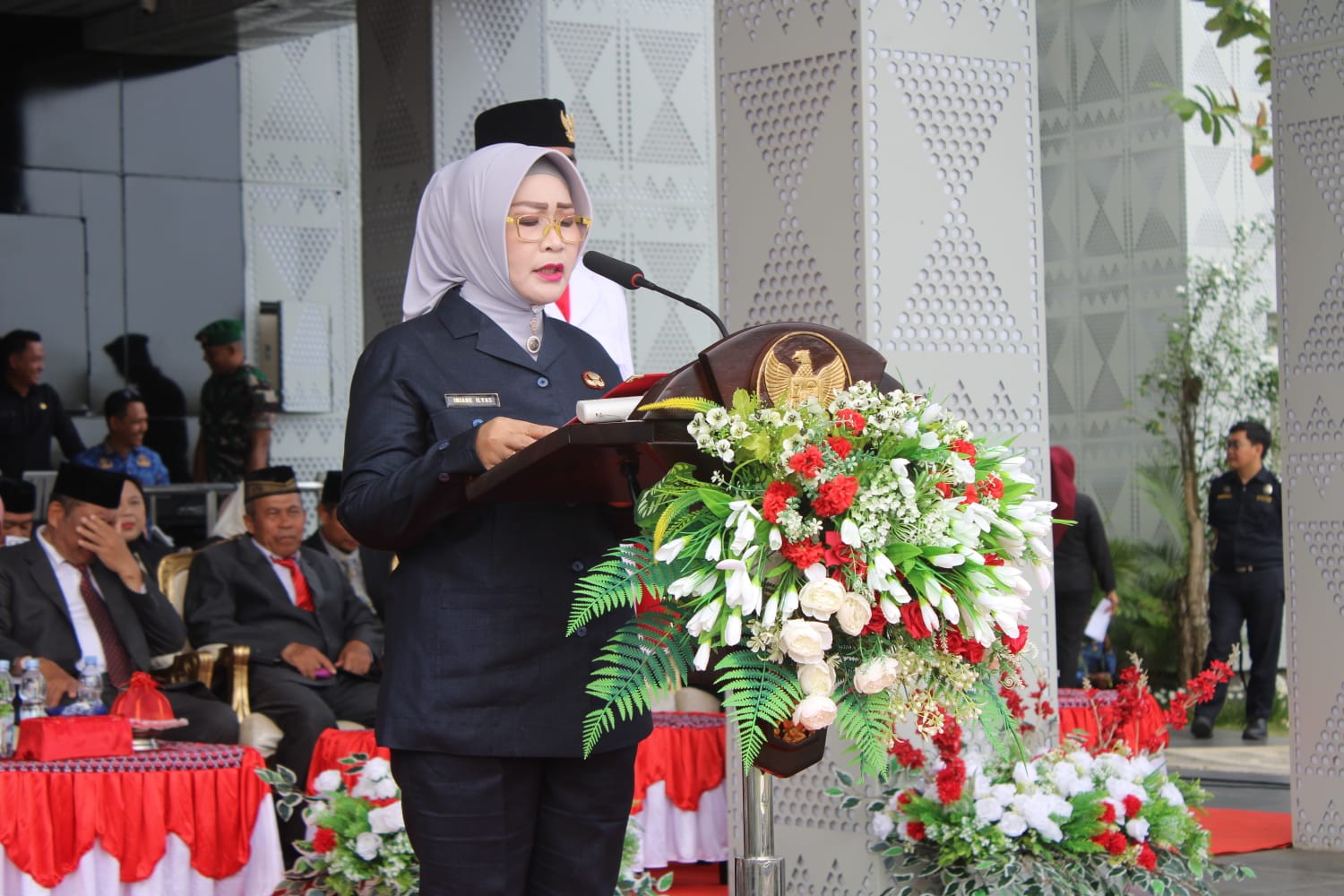 Wakil Bupati Morowali, Iriane Iliyas, S.E., bertindak sebagai inspektur upacara dan menyampaikan amanat penuh semangat kebangsaan kepada seluruh peserta upacara.