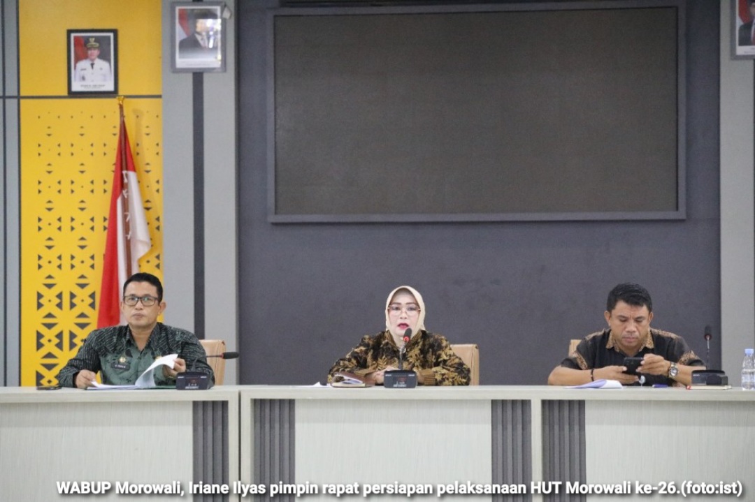 MOROWALI, Brita.id – Wakil Bupati Morowali, Iriane Ilyas, S.E., memimpin rapat final persiapan Hari Jadi Kabupaten Morowali ke-26 di Ruang Pola Kantor Bupati Morowali, Kamis (27/11/2025).