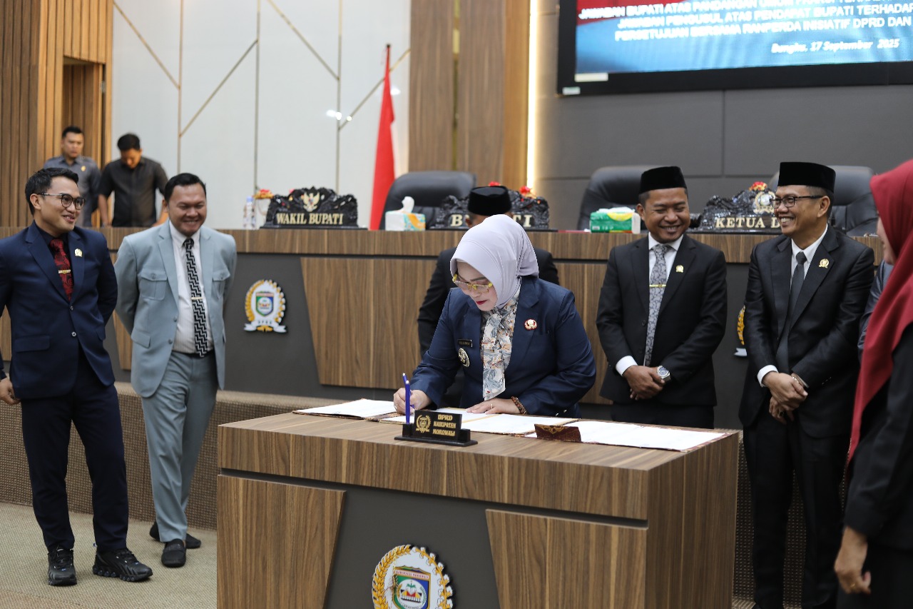 Lebih lanjut, Pemerintah Daerah juga memberikan apresiasi atas kerja sama yang terjalin dengan Badan Pembentukan Perda DPRD dalam proses penyusunan empat Ranperda inisiatif DPRD, yakni: