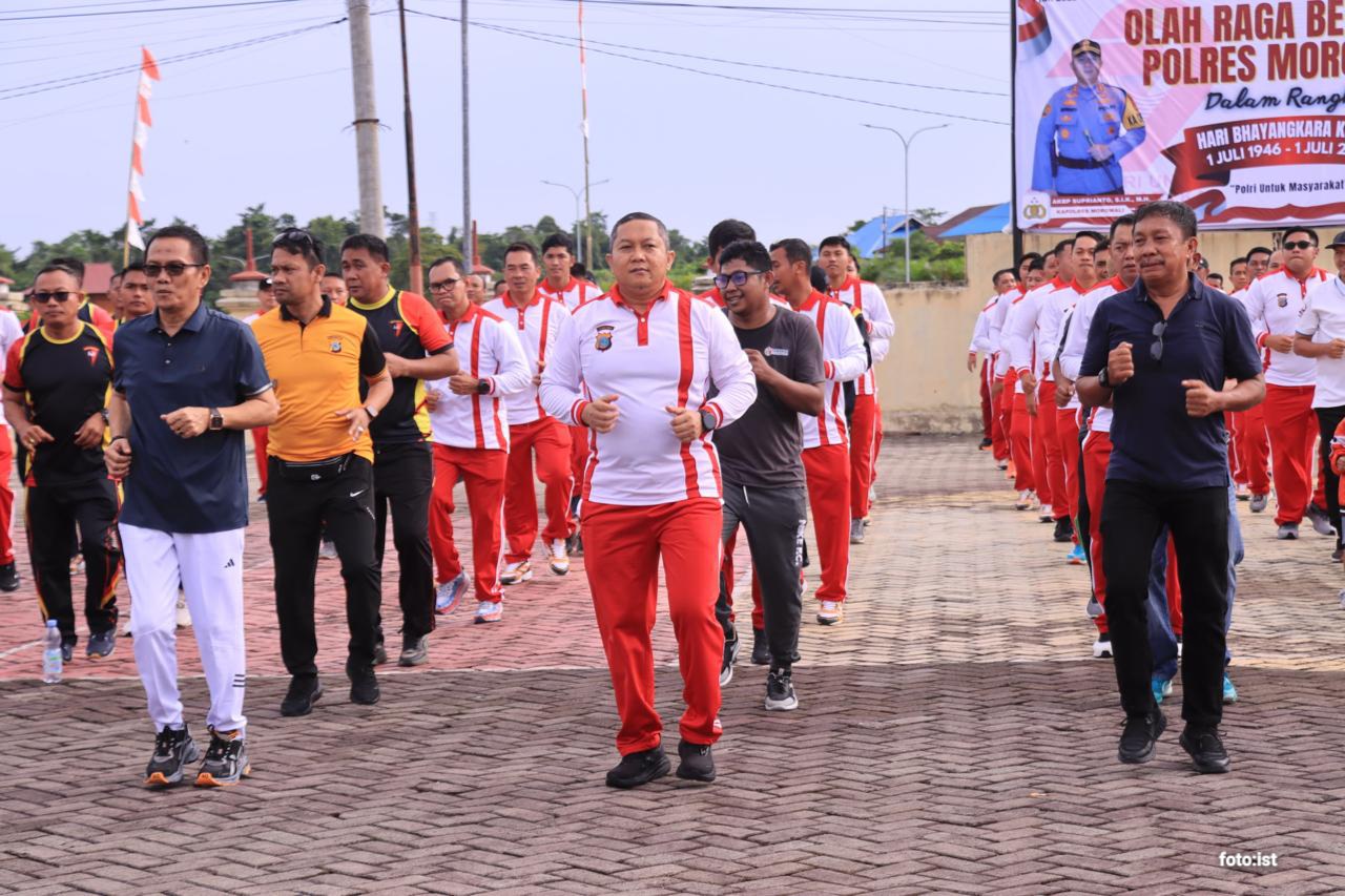 Kapolres Morowali AKBP Suprianto yang hadir langsung dalam kegiatan tersebut, menyampaikan bahwa olahraga bersama ini merupakan bagian dari rangkaian peringatan Hari Bhayangkara ke-79 yang mengusung tema “Polri Presisi Mendukung Percepatan Transformasi Ekonomi yang Inklusif dan Berkelanjutan Menuju Indonesia Emas”.