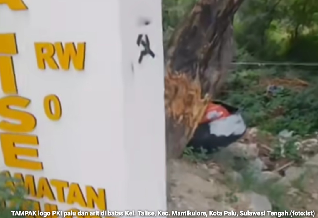 PALU,Brita.id– Warga dihebohkan dengan munculnya logo PKI, palu dan arit, di salah satu gerbang batas Kelurahan Talise, Kecamatan Mantikulore, Kota Palu Sulawesi Tengah, Selasa (15/7/2025).
